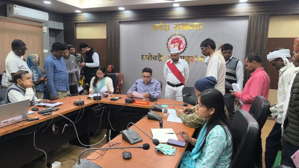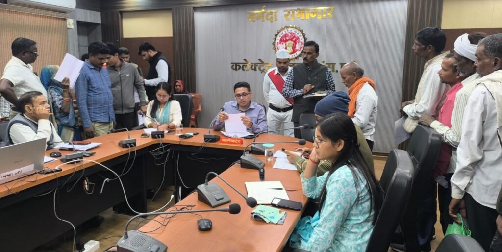 अनूपपुर 10 फरवरी 2026/ जिला स्तरीय जनसुनवाई मंगलवार को कलेक्ट्रेट स्थित नर्मदा सभागार में संपन्न हुई। कलेक्टर श्री हर्षल पंचोली ने 70 आवेदनों पर जनसुनवाई करते हुए संबंधित विभागों के अधिकारियों को निराकरण करने के निर्देश दिए। जनसुनवाई में मुख्य कार्यपालन अधिकारी जिला पंचायत श्रीमती अर्चना कुमारी, अपर कलेक्टर श्री दिलीप कुमार पाण्डेय, डिप्टी कलेक्टर सुश्री प्राशी अग्रवाल सहित विभिन्न विभागों के जिला अधिकारियों ने भी आवेदकों की समस्याएं सुनी।