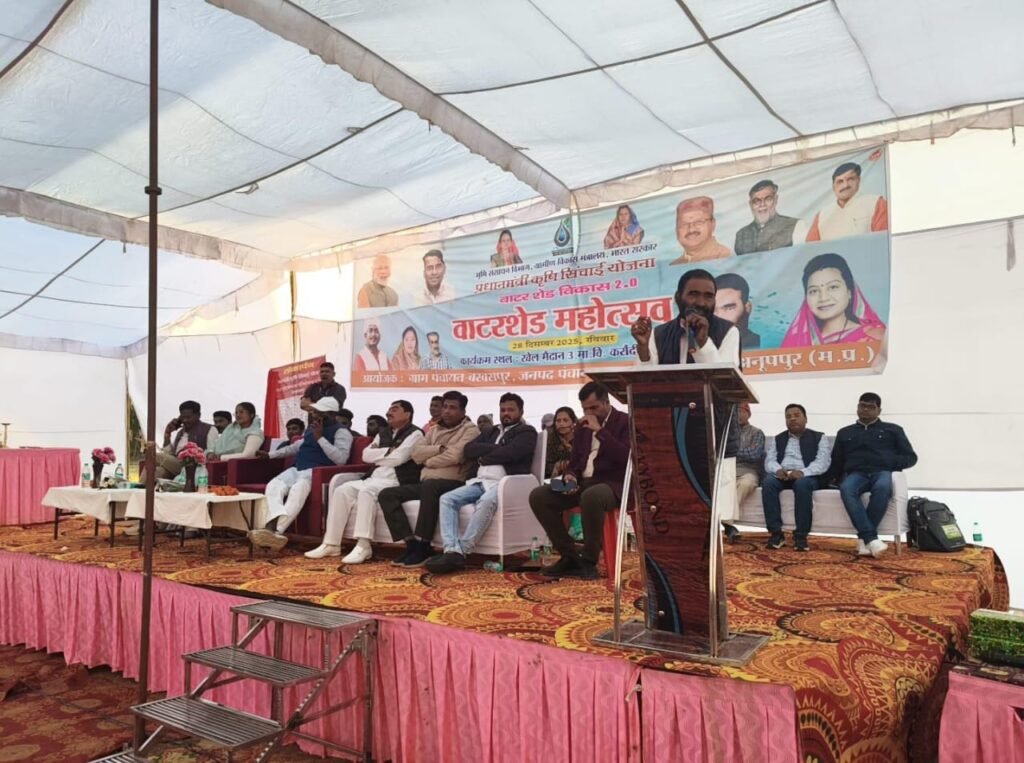 अनूपपुर 28 दिसंबर 2025/ जल संरक्षण और संवर्धन के क्षेत्र में निरंतर कार्य किये जा रहे हैं जिसके तहत बनाई गई खेत तालाब संरचना उपयोगी है इसे ग्रामीण,कृषक आर्थिक लाभ का साधन बना सकते हैं। जल संरक्षण जरूरी है प्राकृतिक स्रोतों को बचाना हम सब का नैतिक दायित्व है उक्ताशय के विचार पुष्पराजगढ़ विधानसभा क्षेत्र के विधायक श्री फुन्देलाल सिंह मार्को ने प्रधानमंत्री कृषि सिंचाई योजना वाटरशेड विकास 2.0 परियोजना के अंतर्गत ग्राम पंचायत सोनहरा (बरबसपुर) में आयोजित वाटरशेड महोत्सव कार्यक्रम को संबोधित करते हुए कही।