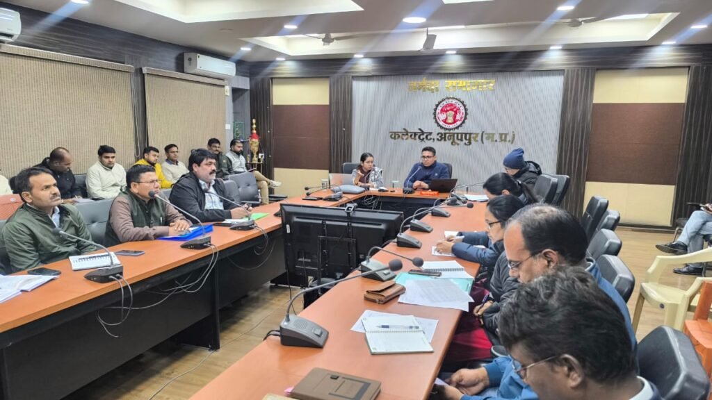 अनूपपुर 25 दिसंबर 2025/कलेक्टर श्री हर्षल पंचोली ने बुधवार को कलेक्ट्रेट के नर्मदा सभागार में समयावधि पत्रों की समीक्षा बैठक की। बैठक में कलेक्टर ने जिले में संचालित अटल ई सेवा केंद्र के संचालन के संबंध में जानकारी प्राप्त की जिस पर अवगत कराया गया कि वर्तमान स्थिति में जिले के 32 ग्राम पंचायतों में अटल ई सेवा केंद्र प्रारंभ कर दिए गए हैं जिस पर उन्होंने जिले के सभी मुख्य कार्यपालन अधिकारी जनपद पंचायतो को निर्देश दिए कि जिले के समस्त ग्राम पंचायतों में अटल ई-सेवा केन्द्र (कॉमन सर्विस सेंटर) के संचालन एवं व्यवस्था सुनिश्चित की जाए,ताकि अटल ई-सेवा केन्द्र (कॉमन सर्विस सेंटर) पर ग्रामवासियों को शासन द्वारा निर्धारित दरों पर शासकीय योजनाओं के संबंध में जानकारी तथा सेवाये उपलब्ध कराई जा सके।