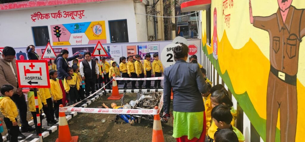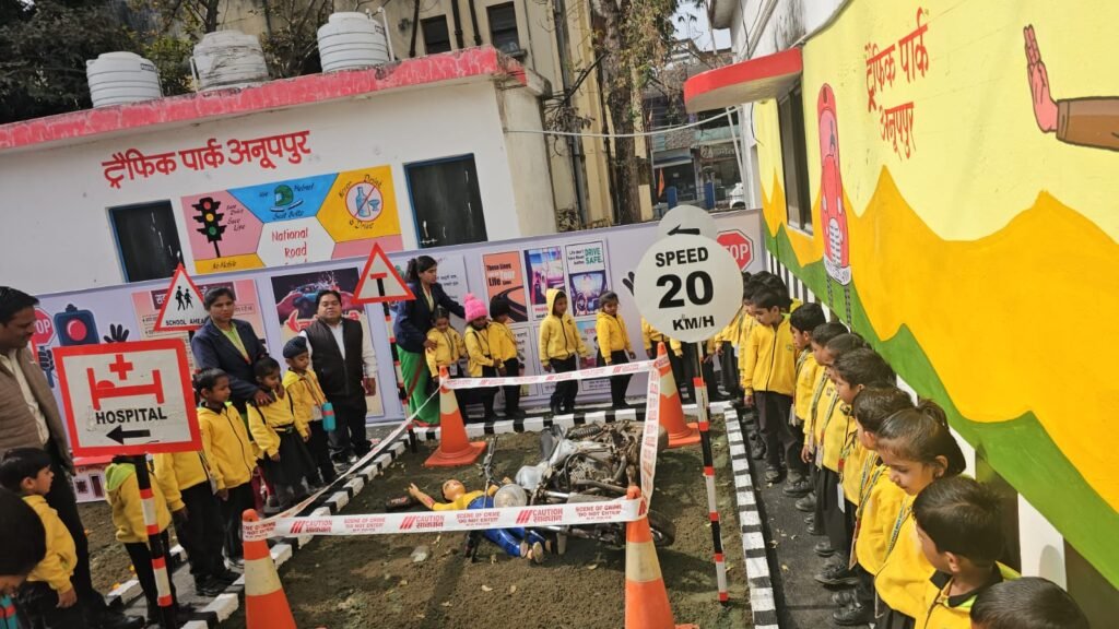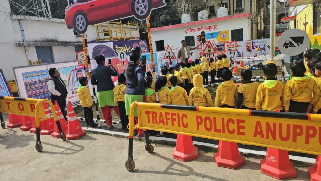 ट्रैफिक पार्क अनूपपुर बना यातायात शिक्षा का केंद्र जिला परिवहन अधिकारी ने बच्चों को सिखाए ट्रैफिक नियमअनूपपुर 30 जनवरी 2026/ यातायात नियमों के प्रति जनजागरूकता बढ़ाने के उद्देश्य से ट्रैफिक पार्क अनूपपुर में स्कूली बच्चों का लगातार आगमन हो रहा है। इसी कड़ी में आज जिला परिवहन अधिकारी श्री सुरेंद्र सिंह गौतम ट्रैफिक पार्क पहुंचे, जहां उन्होंने बच्चों को यातायात नियमों की बारीक जानकारी सरल एवं रोचक तरीके से दी। जिला परिवहन अधिकारी ने बच्चों को सड़क संकेतों, ट्रैफिक सिग्नल, पैदल यात्रियों के नियम, हेलमेट व सीट बेल्ट की अनिवार्यता के बारे में विस्तार से समझाया। उन्होंने कहा कि बचपन में सीखी गई यातायात की समझ जीवन भर सुरक्षित रहने में मदद करती है। इस दौरान ट्रैफिक पार्क में बनाए गए मॉडल रोड, सिग्नल सिस्टम और चिन्हों के माध्यम से बच्चों को वास्तविक परिस्थितियों का अनुभव कराया गया, जिससे वे नियमों को आसानी से समझ सके। बच्चों ने भी उत्साहपूर्वक प्रश्न पूछे और गतिविधियों में भाग लिया।