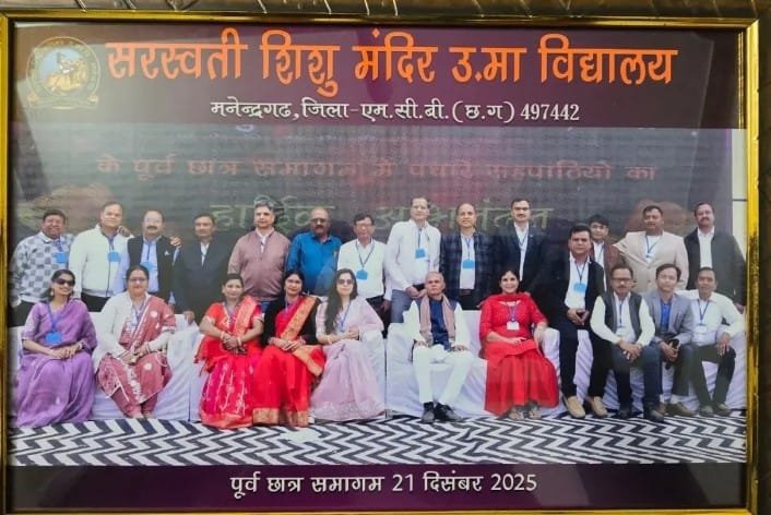 सरस्वती शिशु मंदिर हायर सेकेंडरी स्कूल मनेन्द्रगढ़ में रविवार 21 दिसंबर 2025 को आयोजित पूर्व छात्रों का समागम ऐतिहासिक, भावनात्मक एवं अत्यंत सफल रहा। वर्ष 1970 में स्थापित विद्यालय के 55 वर्षों के इतिहास में पहली बार इतने बड़े स्तर पर पूर्व छात्रों का सम्मेलन सम्पन्न हुआ,जिसमें 1983 से 2005 तक के बैच के विद्यालय से शिक्षार्जन कर चुके भैया-बहिनों ने बड़ी संख्या में सहभागिता की।
