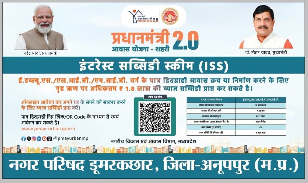 प्रधानमंत्री आवास योजना – शहरी, मध्यप्रदेश के तहत इंटरेस्ट सब्सिडी स्कीम (ISS/EWS घटक) के अंतर्गत नगर परिषद डूमरकछार में विशेष शिविर का आयोजन किया गया। इस अवसर पर पात्र हितग्राहियों को योजना की जानकारी दी गई और आवेदन संबंधी मार्गदर्शन उपलब्ध कराया गया।