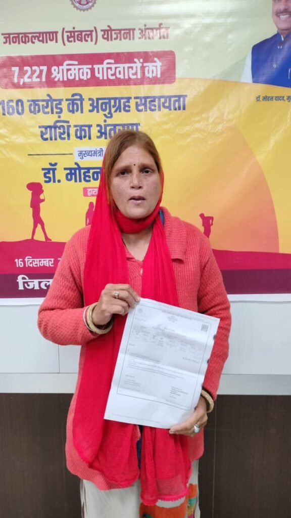 स्व. रामानुज विश्वकर्मा का नाम संबल योजना में पंजीकृत होने के कारण, उनके निधन के पश्चात योजना के अंतर्गत 4 लाख रुपये की अनुग्रह सहायता राशि प्रदेश के मुख्यमंत्री डॉ. मोहन यादव द्वारा 16 दिसंबर 2025 को सिंगल क्लिक के माध्यम से सीधे हितग्राही के बैंक खाते में अंतरित की गई। यह सहायता राशि राजकुमारी विश्वकर्मा के लिए न केवल आर्थिक संबल बनी, बल्कि उनके परिवार के भविष्य को सुरक्षित करने का मजबूत आधार भी बनी।
