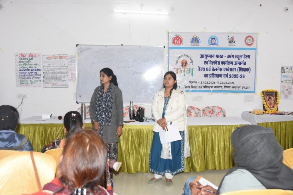 अनूपपुर 22 फरवरी2026- जिला में आयुष्मान भारत आयुष्मान भारत “उमंग” स्कूल हेल्थ एवं वेलनेस कार्यक्रम तथा राष्ट्रीय किशोर स्वास्थ्य कार्यक्रम अंतर्गत माध्यमिक शिक्षकों का तीन दिवसीय जिला स्तरीय प्रशिक्षण 21 से 23 फरवरी 2026 तक जिला शिक्षा एवं प्रशिक्षण संस्थान अनूपपुर में आयोजित किया जा रहा है। प्रशिक्षण कलेक्टर श्री हर्षल पंचोली के मार्गदर्शन में संपन्न हो रहा है।