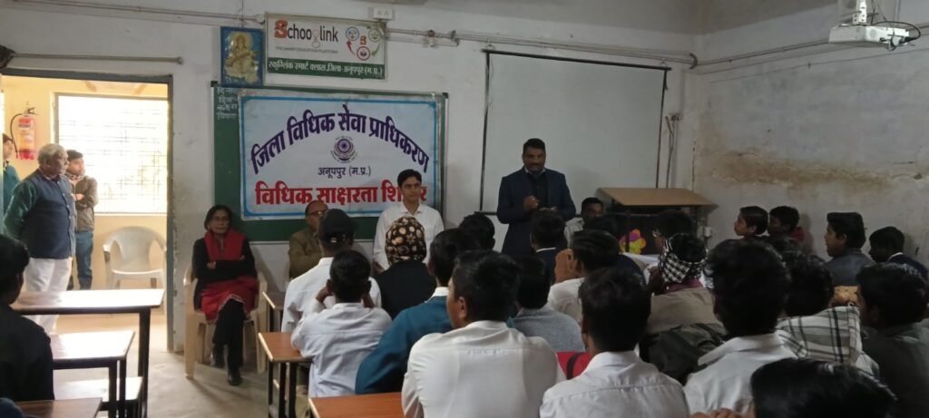 अनूपपुर 29 जनवरी 2026/ प्रधान जिला न्यायाधीश एवं अध्यक्ष जिला विधिक सेवा प्राधिकरण अनूपपुर श्रीमती माया विश्वलाल के निर्देशानुसार जिला विधिक सेवा प्राधिकरण अनूपपुर द्वारा आज शासकीय बालक उच्चतर माध्यमिक विद्यालय अनूपपुर में बाल विवाह मुक्त भारत के अन्तर्गत जिला न्यायाधीश श्री श्रीकृष्ण डागलिया एवं विधिक सहायता अधिकारी श्री बृजेश पटैल की उपस्थिति में विधिक साक्षरता एवं जागरूकता शिविर का आयोजन किया गया।