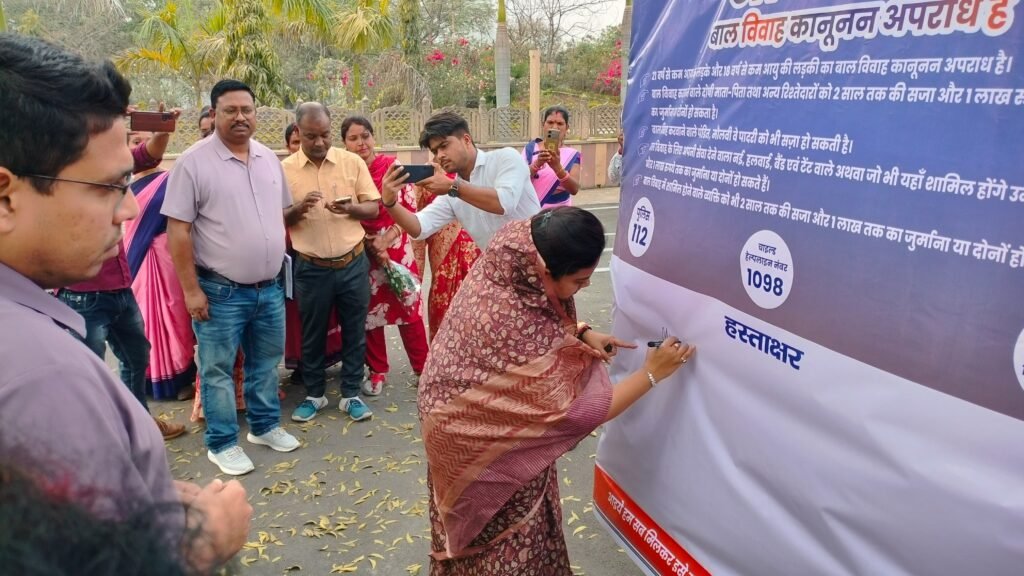 कार्यक्रम के दौरान आयोजित हस्ताक्षर अभियान में सांसद श्रीमती हिमाद्री सिंह, कलेक्टर श्री हर्षल पंचोली, मुख्य कार्यपालन अधिकारी जिला पंचायत श्रीमती अर्चना कुमारी सहित अन्य अधिकारियों एवं कर्मचारियों ने बाल विवाह रोकथाम के समर्थन में हस्ताक्षर कर सामाजिक कुरीति के उन्मूलन का संकल्प लिया।