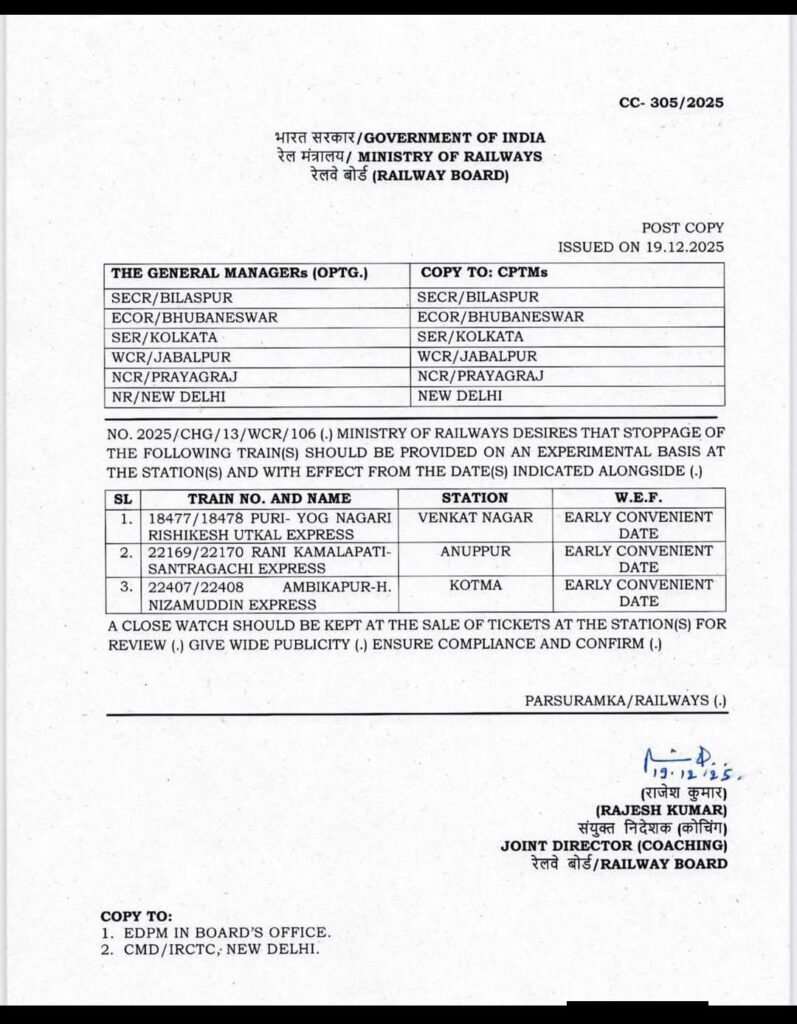 पत्र में उल्लेख किया गया है कि क्षेत्र की आम जनता एवं स्थानीय जनप्रतिनिधियों द्वारा लंबे समय से कुछ प्रमुख एक्सप्रेस ट्रेनों के ठहराव की मांग की जा रही है। इन्हीं जनभावनाओं को ध्यान में रखते हुए सांसद ने निम्नलिखित ट्रेनों के ठहराव का प्रस्ताव रखा है—