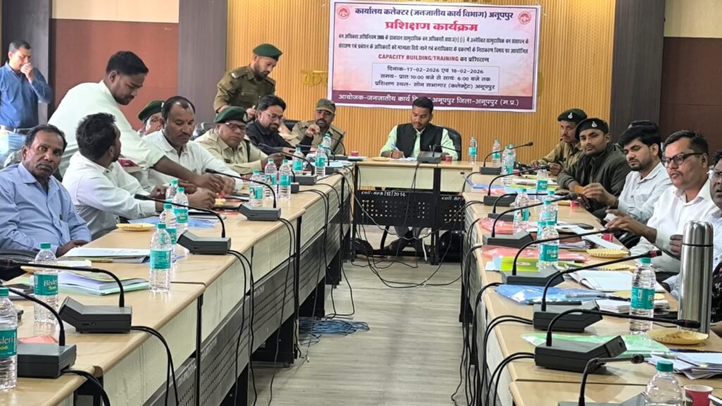 अनूपपुर, 17 फरवरी 2026/ मध्यप्रदेश शासन, जनजातीय कार्य विभाग, भोपाल के निर्देशानुसार वन अधिकार अधिनियम, 2006 के प्रावधानों, विशेषकर सामुदायिक वन अधिकारों तथा धारा 3(1)(i) के अंतर्गत उल्लेखित सामुदायिक वन संसाधनों के संरक्षण एवं प्रबंधन संबंधी अधिकारों को मान्यता प्रदान किए जाने के विषय में प्रशिक्षण कार्यक्रम कलेक्ट्रेट स्थित सोन सभागार में आयोजित किया गया।