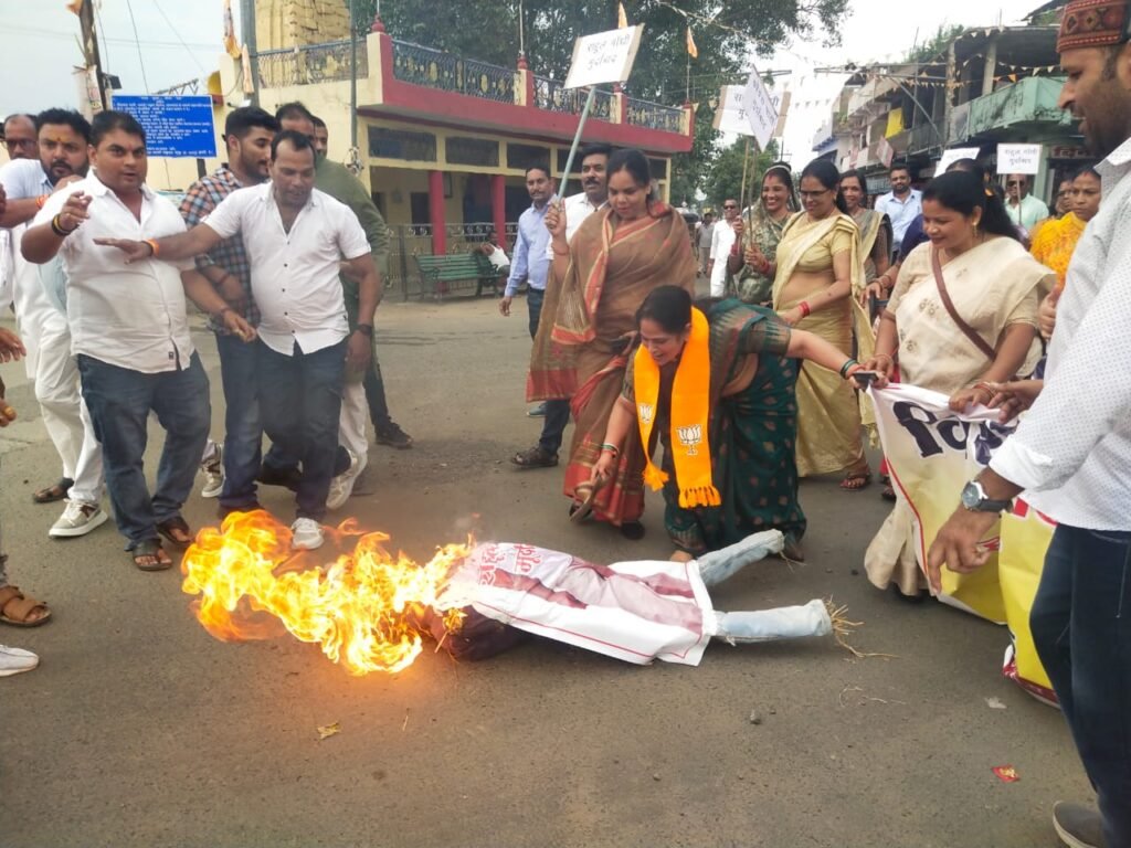 भाजपा ने राहुल गांधी का पुतला फूंका, अनिल गुप्ता का कब फूकेंगी पुतला, अपमानित महिला को कब मिलेगा न्याय